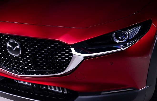 Mazda CX-30 tiếp tục ứng dụng triết lý thiết kế KODO mới, với các đặc trưng riêng biệt của thương hiệu, mang lại niềm tự hào và đẳng cấp khác biệt cho người sở hữu. Mặt ca lăng phía trước là sự kết hợp của đường viền chrome biểu tượng đôi cánh của thương hiệu của Mazda, kết hợp với tính hiện đại của hệ thống đèn pha công nghệ LED.